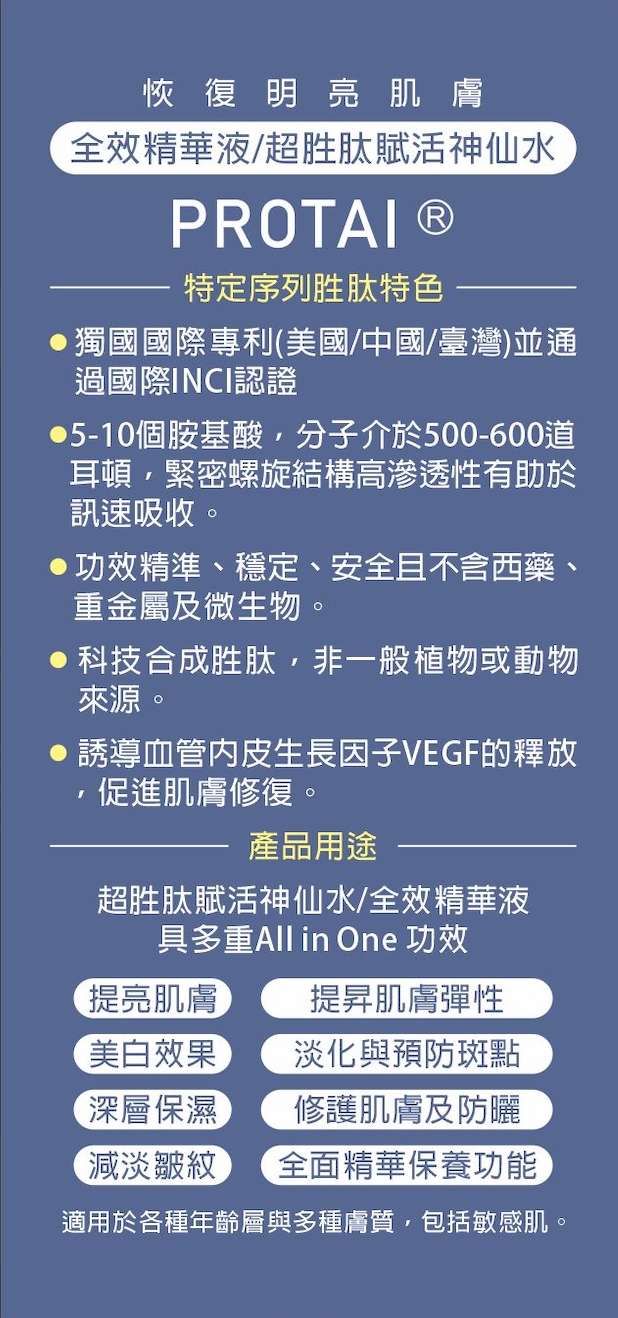 獨家專利 Protai 結合植物幹細胞及植物外泌體,三強攜手超過三十種成分共同呈現。